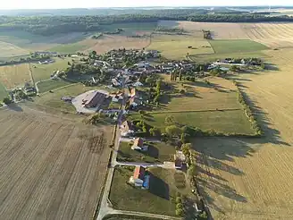 L'occupation des sols de la commune, telle qu'elle ressort de la base de données européenne d’occupation biophysique des sols Corine Land Cover (CLC), est marquée par l'importance des territoires agricoles (61,6 % en 2018), une proportion identique à celle de 1990 (61,6 %). La répartition détaillée en 2018 est la suivante : terres arables (50,2 %), forêts (35,3 %), zones agricoles hétérogènes (7,8 %), prairies (3,6 %), milieux à végétation arbustive et/ou herbacée (3,1 %)[13]. L'évolution de l’occupation des sols de la commune et de ses infrastructures peut être observée sur les différentes représentations cartographiques du territoire : la carte de Cassini (XVIIIe siècle), la carte d'état-major (1820-1866) et les cartes ou photos aériennes de l'IGN pour la période actuelle (1950 à aujourd'hui)[Carte 1].