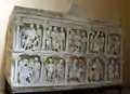Sur la face du sarcophage, dix niches représentent des scènes de l'ancien et du nouveau Testament. Celles du haut représentent, de gauche à droite, la Ligature d'Isaac, l'arrestation de Pierre, le Christ en gloire, le Christ conduit à Ponce Pilate et Pilate se lavant les mains. Celles du bas représentent, de gauche à droite, Job dans le dénuement et pleuré par ses proches, le péché originel, l'entrée du Christ à Jérusalem, Daniel dans la fosse aux lions et l'arrestation de Paul[4].