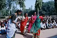 Le sari se porte sur un jupon et un corsage serré laissant le ventre nu. Il est fait d'une pièce, et il n'était habituellement porté que par les femmes mariées.