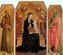 - Vierge et l'Enfant en majesté, avec quatre anges, saint Jean Baptiste, saint Pierre, saint François et saint Paul dite, La Madone des neiges, v. 1432, exécuté pour la chapelle San Boniface de la Cathédrale de Sienne, Galerie Palatine, Florence. Les scènes de la prédelle, illustrent la fondation de la basilique Sainte-Marie-Majeure de Rome au lendemain de la chute de neige du [11].