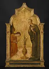 - La Vision de saint Thomas d'Aquin, (1423), cette peinture faisait partie d'un triptyque, aujourd'hui disparu, de l'église du Pèlerin à Sienne, peinture sur bois, 25 × 28,5 cm, Musées du Vatican, Rome