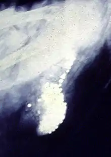 - Un très grand nombre d'espèces s'avèrent touchées, dont des aigles (dont le Pygargue à tête blanche ; Haliaeetus leucocephalus, symbole des États-Unis) qui en meurent aussi (au moins 7 % des cadavres retrouvés) ou en sont affectés[45] ; Une Grue blanche (Grus americana, espèce menacée, et plus grand oiseau des Amériques) trouvée morte par le US Fish and Wildlife service) présentait 75 plombs dans le gésier[45] ; On démontre le lien saturnisme-gastrolithe caractéristique des espèces et cette incidence[45], relation qui sera confirmée en 2005 par une étude de l'université du Texas[45].