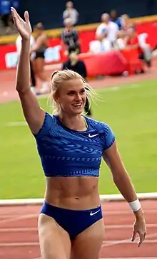 Aux Jeux Olympiques de Rio en 2016, la Grecque Ekateríni Stefanídi devient championne olympique après avoir franchi 4,85 m à son deuxième essai[55], tout comme l'Américaine Sandi Morris, qui a elle en revanche échoué une fois de plus à sa première barre à 4,70 m. Le podium est complété par la jeune perchiste de 19 ans Eliza McCartney qui égale le record de Nouvelle-Zélande avec 4,80 m[56]. Ce concours s'est déroulé en l'absence de Yelena Isinbayeva car la délégation russe avait été bannie par l'IAAF en raison d'un dopage d'Etat organisé mis en lumière par le rapport McLaren[57].