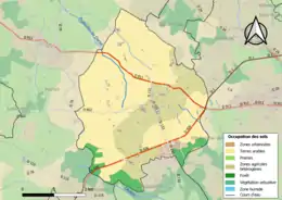 L'occupation des sols de la commune, telle qu'elle ressort de la base de données européenne d’occupation biophysique des sols Corine Land Cover (CLC), est marquée par l'importance des territoires agricoles (91,6 % en 2018), néanmoins en diminution par rapport à 1990 (94,1 %). La répartition détaillée en 2018 est la suivante : terres arables (65,8 %), zones agricoles hétérogènes (25,8 %), forêts (6,2 %), zones industrielles ou commerciales et réseaux de communication (2,2 %)[18].