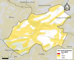 La commune est vulnérable au risque de mouvements de terrains constitué principalement du retrait-gonflement des sols argileux[15]. Cet aléa est susceptible d'engendrer des dommages importants aux bâtiments en cas d’alternance de périodes de sécheresse et de pluie. 57,9 % de la superficie communale est en aléa moyen ou fort (90 % au niveau départemental et 48,5 % au niveau national). Sur les 311 bâtiments dénombrés sur la commune en 2019, 266 sont en aléa moyen ou fort, soit 86 %, à comparer aux 83 % au niveau départemental et 54 % au niveau national. Une cartographie de l'exposition du territoire national au retrait gonflement des sols argileux est disponible sur le site du BRGM[16],[Carte 2].