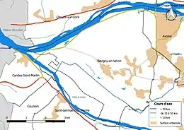 La commune se situe sur une presqu'île formée par la confluence de la Loire (3,047 km) et de la Vienne (1,068 km). Le réseau hydrographique communal, d'une longueur totale de 12,83 km, comprend en outre un petit cours d'eau[1],[2].