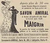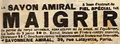 Le « savon vert de l'Amiral » fut mis au point en 1897[12],[13] par le chimiste français Louis Encausse, qui s'était précédemment fait connaître pour son très contesté[14] générateur de vapeur, censé favoriser l'absorption de substances médicamenteuses par l'intermédiaire de la peau[15]. La publicité du savon, commercialisé par son fils Gérard[16], médecin plus connu sous le nom de Papus, et sa fille Louise[17], promettait de faire maigrir les parties savonnées. De couleur verte, il contenait environ 5 % de fiel de bœuf[18] et présentait une odeur « aromatique très agréable »[19]. Selon le docteur Gérard Encausse, qui s'appuyait sur la thèse de son père sur l'absorption cutanée des médicaments[20], ce savon « favorisait l'absorption de la bile par la peau et son action pouvait s'exercer directement sur le tissu adipeux »[21].