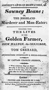 - (en) The History of Sawney Beane and His Family : Robbers and Murderers, s.d., XVIIIe siècle.