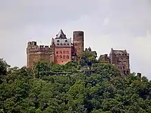 - (de) Cet article est partiellement ou en totalité issu de l’article de Wikipédia en allemand intitulé « Schönburg (Rhein) » (voir la liste des auteurs).
