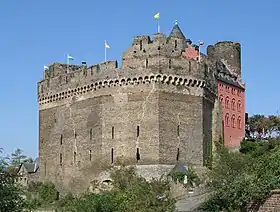 La construction du château a commencé dans la première moitié du XIIe siècle, il n'est pas certain que ce soit par l'archevêque de Magdebourg ou comme château impérial (Kaiserburg). En 1149, il apparaît dans les sources comme fief de Hermann de Stahleck, qui fit assassiner dans ce château son rival du Comtes palatins du Rhin, Otto I de Rheineck. Au XIVe siècle, le château fut transféré à l'Électorat de Trèves.