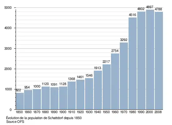 Le graphique suivant résume l'évolution de la population de Schattdorf entre 1850 et 2008[4] :