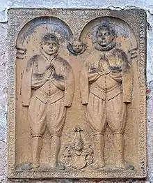![]() Ancienne pierre tombale de la famille Schierer von Waldhaimb zu Falknov, XVe siècle, Bohême. |