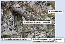 - schistosité de fracture, de fracturation ou espacée disjointe[3] ;