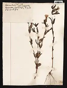 En 1775, le botaniste Aublet en a proposé décrite pour la première fois Schultesia guianensis sous le nom de Exacum tenuifolium et en a proposé le protologue suivant[14] :