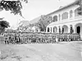 - Photo 2 : Prise d'armes à Tsingtau au début des années 1900 : on remarquera la présence de marins, de fantassins de marine et d'auxiliaires chinois.