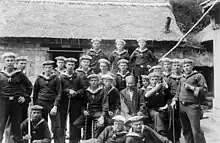 - Photo 1 : Des marins et fusiliers marins posent pour une traditionnelle photo-souvenir exotique à Tsingtau en 1898. L'uniforme est constité d'une vareuse blanche et d'un pantalon bleu de Prusse.
