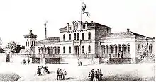 Au XIXe siècle, diverses mesures d'urbanisme bouleversèrent le paysage urbain. Schwerin, en s'étendant sans cesse, se dépouillait de son caractère médiéval. Les fortifications, devenues inutiles, furent abattues, tandis que les constructions en pierre et en charpente achevaient de remplacer les dernières maisons en bois. Simultanément, la communauté juive, qui comptait désormais 300 représentants, reconstruisit entièrement sa synagogue en 1825[7]. L'aménagement du quartier de la Grande Tourbière souleva d'énormes difficultés compte tenu du sous-sol encore marécageux. La Marienplatz et la Rue de Rostock (actuelle Goethestraße) se couvrirent de nouvelles maisons : entre 1824 et 1834, le duc Frédéric-François Ier de Mecklembourg-Schwerin fit édifier un nouveau ministère et d'autres bâtiments dans la rue du Château. Le secrétaire d'État à la Construction, Georg Adolph Demmler, réaménagea en 1836 l'hôtel de ville en un édifice prestigieux, tandis qu'on reconstruisait le théâtre de l'Alter Garten et les écuries de la presqu'île de Marstall. Au Nord de Schwerin, sur le Sachsenberg, le premier institut de recherche médical d'Allemagne du Nord, l’Irren-Heil- und Pflege-Anstalt, ouvrait ses portes.