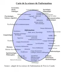 La science de l'information (ou les sciences de l'information) est un champ disciplinaire ayant pour objet scientifique l'information, lequel est principalement concerné par l'analyse, la collecte, la classification, la manipulation, le stockage, la récupération, la circulation, la diffusion et la protection de l'information[1]. Les praticiens, qu'ils travaillent ou non sur le terrain, étudient l'application et l'utilisation des connaissances dans les organisations, ainsi que l'interaction entre les personnes, les organisations et tout système d'information existant, dans le but de créer, remplacer, améliorer ou comprendre les systèmes d'information. Historiquement, les sciences de l'information sont associées à l'informatique, à la psychologie et à la technologie[2]. Cependant, la science de l'information intègre également des aspects de divers domaines tels que les sciences de l'archivistique[3], les sciences cognitives, le commerce, le droit, la linguistique, la muséologie, la gestion, les mathématiques, la philosophie, les politiques publiques et les sciences sociales.
