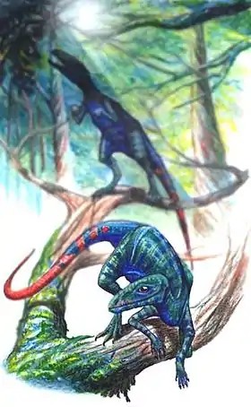 - (en) M. J. Benton, « Scleromochlus taylori and the origin of dinosaurs and pterosaurs », Philosophical Transactions of the Royal Society B: Biological Sciences, vol. 354, no 1388, , p. 1423–1446 (PMCID 1692658, DOI 10.1098/rstb.1999.0489, JSTOR 57034)