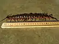 Le corps est constitué de 21 à 23 segments qui sont de couleur cuivre à marron. Chaque segment porte une paire de pattes jaunâtres. Ces dernières sont adaptées à la marche rapide et la course.