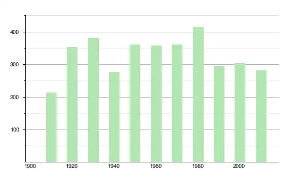 | 1930 | 381 | ▲ +7,93 % | |