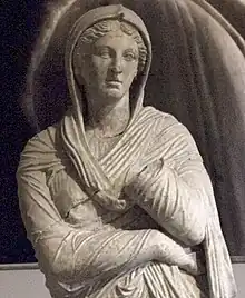 La coiffure féminine romaine (en), sous la république, se distinguait peu de à celle des Grecques. Sous l'empire elle devient un signe de distinction. Cela demande du temps, le savoir-faire de professionnels et des accessoires, et même des perruques de natures et couleurs variées. Ces coiffures introduisent, pour le sculpteur d'origine grecque, des motifs propres au monde romain. La diversité des coiffures, en fonction du statut et de la période, aide, aujourd'hui, à la datation.
