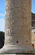 À cette époque, les statues-portraits et certains reliefs publics ont été, souvent, remployés dans un tout autre projet lorsque leur actualité était passée. Dans les portraits en marbre la tête était sculptée séparément du corps, et ensuite assemblée par tenon et mortaise. Il était donc possible, dans l'Antiquité, de remplacer la tête d'une statue par une autre. Cette tradition semble apparaître avec la présence romaine, dans un contexte hellénistique où les statues-portraits étaient très nombreuses[55]. Elles avaient été érigées aux personnalités les plus marquantes de la république depuis au moins le Ve siècle AEC[56].