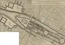 Reprenant un projet présenté lors d'un concours organisé en 1748, Pierre Patte travailla dans les années 1760 sur l'éventualité de rassembler l'île de la Cité et l'île Saint-Louis, arguant que chacune de ces deux îles était née de la réunion d'îlots par comblement des bras les séparant « en ordonnant qu'on y portât les gravois de Paris »[18].