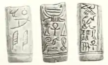 - un sceau-cylindre qui se trouve actuellement au Musée Petrie (UC 11527)[3],