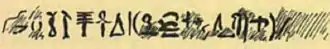 Stèle d'Oupouaoutemsaf à Abydos (dessin publié dans Hieroglyphic texts from Egyptian stelae, &c., in the British Museum, Part IV de Wallis Budge en 1913). | |
