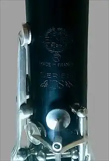 - n°6 : avec sol dièse articulé, si bémol fourche, levier renvoi de mi bémol /sol dièse, 19 clés-7 anneaux,