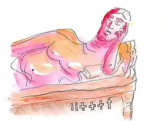 ![]() Femme étrusque semisdraiata d'un sarcophage figuré à Pérouse. |