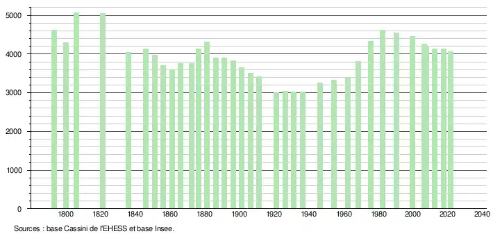 - Population municipale légale en vigueur au 1er janvier 2024, millésimée 2021, définie dans les limites territoriales en vigueur au 1er janvier 2023, date de référence statistique : 1er janvier 2021.