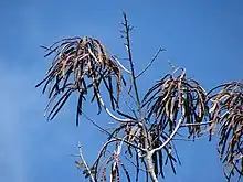 C'est un arbre dont la cime irrégulière peut atteindre 25 m de haut.