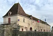 - ce qu'il reste du château de Sennecey-le-Grand (démoli en 1825, et dont ne subsistent que, d'une part, les fortifications avec bastions et fossés et, d'autre part, les communs, dans lesquels sont installés à l'est l'hôtel de ville et à l'ouest le presbytère, siège de la paroisse Saint-Martin-entre-Saône-et-Grosne) ;