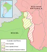 La sentence arbitrale de Paris de 1899 a attribué à la Guyane britannique les rivières Cotinga et Tacutú (affluents du fleuve Blanco - "Rio Branco" en portugais - et cet affluent du fleuve Amazone) et son bassin hydrographique à l'Est, qui affectaient directement le territoire brésilien.