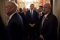 En , le chef de la majorité du Sénat, Harry Reid, annonça que Terrance W. Gainer prévoyait de prendre sa retraite de sergent d'arme et serait remplacé par le sergent d'arme adjoint, Andrew B. Willison[5]. Le , le Sénat assermenta le sergent d'arme pour le mandat en cours, Frank J. Larkin[6].