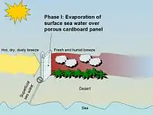 | - | ![]() Figure 1. À l'intérieur de la serre - évaporation : l'eau de mer est pompée à travers le panneau d’évaporation |