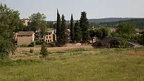 L'occupation des sols de la commune, telle qu'elle ressort de la base de données européenne d’occupation biophysique des sols Corine Land Cover (CLC), est marquée par l'importance des territoires agricoles (50,2 % en 2018), une proportion identique à celle de 1990 (50 %). La répartition détaillée en 2018 est la suivante : forêts (45,6 %), zones agricoles hétérogènes (42,3 %), cultures permanentes (7,9 %), milieux à végétation arbustive et/ou herbacée (4,2 %), espaces ouverts, sans ou avec peu de végétation (0,1 %)[21]. L'évolution de l’occupation des sols de la commune et de ses infrastructures peut être observée sur les différentes représentations cartographiques du territoire : la carte de Cassini (XVIIIe siècle), la carte d'état-major (1820-1866) et les cartes ou photos aériennes de l'IGN pour la période actuelle (1950 à aujourd'hui)[Carte 2].