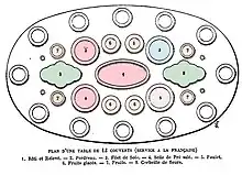 Le service à la française laissait peu de place sur la table au couvert individuel. Ce dernier se développera avec sa disparition (superposition d'assiettes, plusieurs verres devant l'assiette)[23].