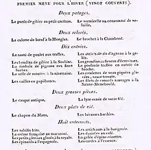 - Marie-Antoine Carême, Le maître-d'hôtel français: traité des menus à servir à Paris, à St.-Pétersbourg, à Londres et à Vienne, J. Renouard, (lire en ligne), p. 151