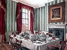 En 1856, Urbain Dubois et Émile Bernard donnent une première définition détaillée des services à la française et à la russe (qui tous deux ont pour base les principes culinaires de l'école française) dans La Cuisine classique : études pratiques, raisonnées et démonstratives de l'école française appliquée au service à la russe[37]. Dubois donne de nombreux exemples de menus servis à la française, à la russe ou à l'anglaise. Le service à l'anglaise est un entre-deux : toute la nourriture est placée sur la table en services successifs, et y est découpée. Ce troisième mode de service apparaît dans la littérature française chez Grimod de la Reynière en 1836[38],[39]. Pierre de Trévières, dans le Figaro (1911), donne une description différente du service à l'anglaise qui daterait de 1820 : selon lui, il se caractérise par « une disposition fleurie de la table. Sur la nappe fine sont disposés les fleurs et les fruits en décors savants, élégants et variés : guirlandes, mosaïque, parterre de pétales. Aucun rôti ne figure sur la table. »[40]