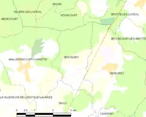 Servigney est une commune française située dans le département de la Haute-Saône, la région culturelle et historique de Franche-Comté et la région administrative Bourgogne-Franche-Comté.