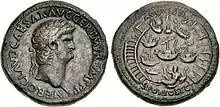 Avers du sesterce de Néron au Portus (Lugdunum Musée et théâtres romains, inv. 2002.1.1)