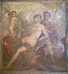 Cependant l'influence de l'art grec mène aux nus héroïques et des Dieux et hommes romains, une pratique qui commence au IIe siècle av. J.-C. Quand les statues de généraux nus à la manière de celles des rois hellénistiques commencent à apparaître, elles ne furent pas choquantes à cause de la nudité masculine mais plutôt parce qu'elles évoquaient les concepts de royauté et de culte impérial, principes contraires aux idéaux de citoyenneté de la République tels qu'incarnés par la toge[109]. Le Dieu Mars est présenté comme un homme mûr, barbu, habillé comme un général Romain lorsqu'il est conçu comme le père digne de la nation romaine, alors que Mars représenté jeune, imberbe et nu montre l'influence de l’Arès grec. Dans l'art produit sous Auguste l'adoption des styles hellénistiques et néo-attiques (en) conduit à une signification plus complexe du corps masculin montré nu, semi-nu ou en cuirasse musculaire[110].
