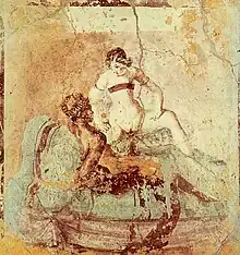 La tabella pornographique et la Vénus chargée d'érotisme font partie des images multiples qu'un connaisseur d'art peut apprécier[Clarke 7]. Une série de peintures des bains suburbains (en) à Pompéi, découverte en 1986 et publiée en 1995, présente des scénarios érotiques qui semblent avoir pour but « d'amuser le spectateur avec un spectacle sexuel choquant », dont une variété de positions sexuelles, des scènes de sexe oral et des scènes de sexe de groupe hétérosexuelles, homosexuelles ou lesbiennes[Clarke 8].