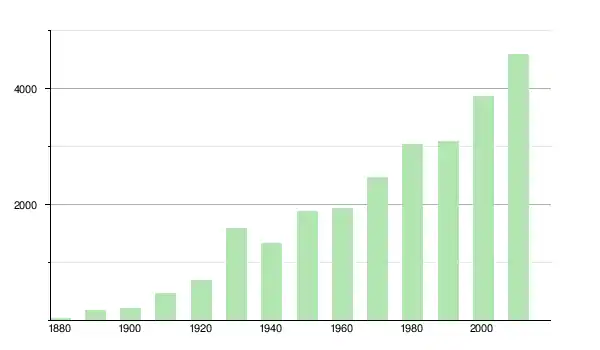 | 1930 | 1 590 | ▲ +128,78 % | |