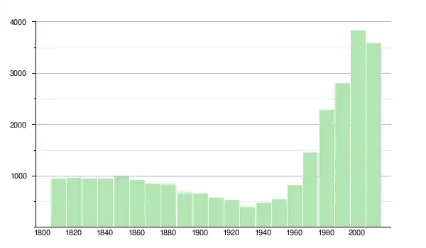 D'après le recensement de 2000, il y avait 3 827 habitants, 1 434 ménages, et 1 092 familles dans la ville. La densité de population était de 67,8 hab/km2. Il y avait 1 606 maisons avec une densité de 28,4 maisons/km2. La décomposition ethnique de la population était : 97,36 % blancs ; 0,55 % noirs ; 0,03 % amérindiens ; 0,68 % asiatiques ; 0,08 % natifs des îles du Pacifique ; 0,63 % des autres races ; 0,68 % de deux ou plus races. 1,72 % de la population était hispanique ou Latino de n'importe quelle race.