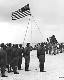 La reddition des troupes japonaises de Wake, le . Shigematsu Sakaibara est l'officier le plus à droite du premier plan.