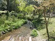 Au nord, la voie d'eau Shirakawa (白川疎水) du canal du lac Biwa se jette dans le Takano à partir de la rue, et on trouve des ruines d'anciens aménagements pour controler le débit d'eau[12].